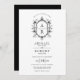 Convite de casamento do monograma floral da crista branca preta. Este convite para o casamento apresenta uma surpreendente crista floral vintage preto e branco, perfeita para anunciar seu dia especial com elegância. A crista que chama os olhos age como o ponto focal, mostrando elegantemente suas iniciais. Abaixo da crista, seus nomes estão lindamente arranjados, melhorando a design geral na frente. O verso do convite é um preto sólido e elegante, que proporciona um aspecto refinado e coeso. Seus hóspedes certamente ficarão felizes em receber um convite tão charmoso.