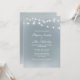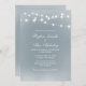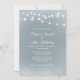 Convites de casamento de cor azul-d com luzes brancas de cordas e uma letra elegante de roteiro.