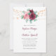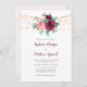 Estes convites florais modernos apresentam um design de aquarela com rosas cor-de-rosa poeirentos e burgundy, flores, folhas de eucalipto e luzes de cordas. Personalize-os com o seu texto. Produtos correspondentes disponíveis.