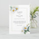 Infusamos sua celebração com o charme iluminado de um caso boêmico usando nosso convite de casamento de margarida aquática. Radiando uma vibração livre e o romance de um dia de verão sonhador, é perfeito para casamentos boêmicos, românticos ou de estilo country. Adicione um código QR opcional para facilitar o acesso a mais detalhes.