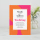 Ponha o tom para uma fabulosa celebração do dia de casamento com este vibrante esquema de cores de rosa quente e laranja. Este convite colorido tem uma aparência de designer com formas laranja brilhantes arredondadas sobre um fundo rosa quente. O modelo de texto no tipo de nódoa contemporânea encara com uma vibração retrorreflectora e carregar o tema com beleza. A palavra "Casamento" é realçada em negrito cor-de-rosa-quente para corresponder à cor vibrante do convite.