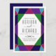 Abstrato geométrico joia moderna multicolorida, joias modernas, convite de casamento. Este convite de casamento moderno apresenta triângulos em tons de joias: azul marinho, roxo violeta, vermelho rubi, azul turquesa e verde esmeralda.