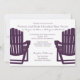 Cadeiras de Adirondack roxas num design de casamento ao estilo moderno para uma praia de destino ou um casamento de cruzeiro.