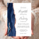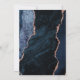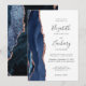 A borda esquerda deste elegante convite de casamento moderno apresenta um marinho azul de aquarela agate bordado com falso brilho rosa de ouro. O texto personalizável combina manuscrito, copperplate e fontes itálicas em cinzas de carvão em um fundo branco. O verso apresenta um design marinho de agate azul e rosa dourado correspondente.