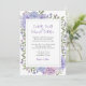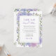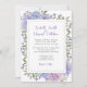 Convite de casamento com flores de hortênsia lilás e azul em aguarela moderna.