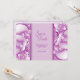 Orquídeas lúdicas, quase caprichosas, em flor, dão um ornamentado de apelação para o casamento, salvar as datas. Apresenta cores roxas e ameixas. A frente do cartão tem "Salvar a Data" com o nome do casal de casamento e a data da cerimônia. O verso do cartão também tem o nome do casal de casamento e a data do casamento, juntamente com o "Convite Oficial para Seguir". Você também pode adicionar sua foto desejada no verso. Use a modelo para personalizar.
