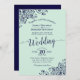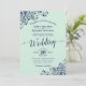 Este belo convite para o casamento verde da casa da moeda apresenta um design simples, mas elegante, com a caligrafia azul de escrita de marinho herdada e os marinhos azuis e espirais nos cantos. A parte de trás apresenta uma adorável cor azul marinho marmoreada.