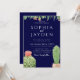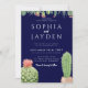 Convite Casamento de Aquarela de Cactus Marinho Azul Escur