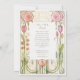 Convide seus convidados com a elegância especial desta suíte de convite para casamento inspirada em Art Nouveau. A design exibe lindamente flores estilizadas, com rosas proeminentes e suaves em tons de rosa e mauve com uma espiral geométrica característica em seus centros. Estas são graciosamente complementadas por delicadas floridas cor-de-rosa, semelhantes a tulipas, e polos encantadores de flores cor-de-rosa mais pequenas e corais com centros amarelos, todos ligados por caules verdes fluentes. A frente do convite define os detalhes do seu casamento dentro deste quadro artístico, onde elementos geométricos sutis do Art Nouveau, como arcos suaves e detalhes lineares, formam um cenário sofisticado. O verso, dedicado a "Os Detalhes Mais Finos", continua esse motif floral e geométrico encantador, garantindo uma apresentação coesa e na moda. A suíte inteira é renderizada em uma técnica delicada de aquarela, emprestando um sentimento suave, romântico e artístico. Este convite é perfeito para casais que buscam um casamento único, inspirado em vintage ou com temas de arte, evocando o charme eterno do início do 20.