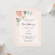 Um fundo rosa dourado esfregado com um arco. Decorados com ouro rosa e verde-verde-floral, de rosa e de eucalipto de cor aquosa, cor-de-rosa. Personalize e adicione seus nomes e detalhes. Traseira: cor de fundo rosa dourada.