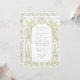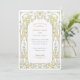 Este luxuoso convite para o casamento apresenta uma fronteira botânica refinada, enfeitiçada com videiras de ouro entrelaçadas e flores de aquarela. Com uma disposição simétrica e um belo trabalho de rolagem, o design inspira-se na iluminação clássica europeia e na decoração antiga do palácio. As margaridas cor-de-rosa, os azulejos e as flores escuras florescem ao longo da moldura, realçadas por sotaques de ouro suave e curvas elegantes de folha. O layout frontal é centrado na tipografia do eterno com talento romântico, realçado por um toque monograma em cada lado. Ao contrário, um design de padrão opulente de cheio espelha um afresco de teto ou tapeçaria histórica, elevando a apresentação geral à simetria ornamental e à elegância floral. Perfeito para casamentos formais, assuntos de jardim, ou casais desenhados para estilos de safra regulares, este design evoca elegância e artista com todos os detalhes.