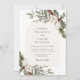 Convite de Casamento Greenery de inverno com um arco de cor d'água evergreens. Personalize com suas informações. Clique em "clicar para personalizar mais" para alterar o estilo, o tamanho ou a cor da fonte.