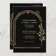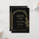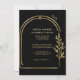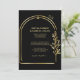 Convite para casamento geométrico com arco geométrico, preto e Dourado, com uma fotografia personalizada no verso.