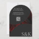 Elegância Moderna Encontra Tradição: Mínimo Maroon, Elegante Muçulmano do Código QR Arch Invitation Embrace eterno elegance com o Mínimo Maroon Elegante Muçulmano do Código QR Convite para Casamento. Este convite cativante combina perfeitamente a funcionalidade moderna com os tradicionais toques islâmicos, criando uma primeira impressão sofisticada e memorável para os seus convidados. Desvendar o Design: Elegância Texturizada: O convite define o palco com uma combinação cativante de tons negros e de marrom texturizados no estilo Arch. Isto cria um sentido de profundidade e intrigação visual. Minimalismo moderno: Uma camada de preto claro toma a forma de um semirarco vertical, acrescentando um toque de elegância moderna e enfatizando o texto dentro. Linda Letra: A frente do convite apresenta um fluxo cuidadosamente organizado de informações: Caligrafia Árabe: O auspicioso "Bismillah" é exibido no topo, invocando bênçãos em seu sindicato. Cabeçalhos: Seguindo a caligrafia, os guias de título claros e modernos orientam os convidados através dos detalhes do convite. Nomes: Os nomes da noiva e do noivo são exibidos de forma destacada no fundo preto comum, garantindo que eles tomem o palco central. Detalhes do Casamento: A data do casamento, a hora, o local com os detalhes de sua localização (cidade e estado) e uma nota sobre a recepção a seguir são apresentados em uma fonte branca clara e elegante. The Back with a Modern Twist: RSVP with Ease (O retorno com uma reviravolta moderna: a parte traseira do convite apresenta uma fonte branca em negrito proclamando "Resposta gentil", solicitando aos convidados a RSVP. Informações Detalhadas: um espaço dedicado permite que você inclua quaisquer informações adicionais que deseja compartilhar, como código de vestimenta ou instruções especiais. Conveniência digital: um código de QR digitalizável elimina a necessidade de placas de RSVP separadas. Os convidados podem simplesmente digitalizar o código para acessar seu site de casamento ou RSVP online. Integração do Web site: O URL do Web site também é apresentado de forma destacada, fornecendo aos convidados outra forma de aceder a todas as suas informações de casamento. Monograma Moderno: A parte inferior do dorso apresenta as iniciais brancas em negrito do noivo e noiva, adicionando um toque de personalização.