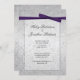 Sobreposição de Damasco Gradiente de Prata com FAUX Roxo Fbon e Convite de Casamento de Posto de Arco. Estas são perfeitas para quando você teve uma cerimônia particular, mas quer que amigos e parentes compartilhem sua felicidade com uma festa mais tarde. Personalize com suas próprias informações. Se você precisar mover o texto ou alterar o tamanho, a fonte ou a cor, clique em Personalizar. Se você quiser este design em outros produtos ou precisar de ajuda de alguma forma, por favor, envie um e-mail para shutterbug600@yahoo.com. Observe que não é uma fita ou arco real, mas uma imagem gráfica