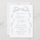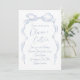 Cartões de convite de casamento elegantes apresentam arco de fita desenhado manualmente com fontes modernas de script manuscrito em azul empoeirado, limpo e simples. Excelente para casamento romântico moderno, casamento maravilhoso e divertido, casamento casual elegante. Veja todas as peças correspondentes na coleção.