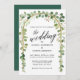 Cartão de Convite para Casamento de Caligrafia Moderna Verde Watercolor - Arch Dourado