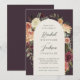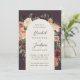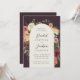 Um belo convite floral para o casamento em outono, com seus nomes em letras de escrita caligráfica, aninhado por dentro de flores de aquarelas e botânicos em tons de terra mutada de burgundy marsala, blush, marfim e sábio verde. Personalize com seus detalhes de casamento embaixo.