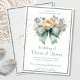 Um design romântico com flores de aquarela macia, eucalipto verde e um grande arco elegante com sotaques de ouro. Perfeito para casais que procuram um tema de casamento eterno e gracioso.