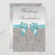 Convites de casamento elegantes e personalizados de prata, com lindas sequências de imagens impressas de prata, joias, joias, padrão de brilho, arcos e fitas brilhantes, azuis e turquesas impressas, fofinhas e sofisticadas, e bonito de diamante digital com joias e texto de cinzas escuras em um fundo de gradiente prateado. Observe que: Todos os convites no Zazzle têm imagens impressas em formato plano. Estes convites elegantes, brilhantes e glamourosos para casamentos são decorados de ambos os lados. Bonitos, na moda, quites, modismos, modernos, reluzentes e encantadores convites. O texto, a fonte e a cor da fonte podem ser personalizados. Se precisar de ajuda para personalizar seu produto, entre em contato comigo pela loja. Ficarei feliz em ajudar. Tenho produtos correspondentes para casamentos na minha loja.