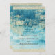 Um elegante convite para o casamento de ouro verde-turquesa e champanhe, com uma pintura de arte moderna de turquesa azul-aqua e ouro de champanhe em champanhe.
