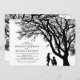 Convites de casamento elegantes, com uma silhueta de uma árvore rústica, um casal sendo engajado, e um simples modelo que é fácil de personalizar.