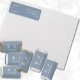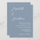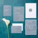 Coleção de casamento elegante monograma em azul empoeirado e branco com suas iniciais em texto minimalista tradicional.
