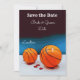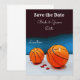 Convite de casamento de basquete com amor ao fundo azul para salvar a data