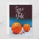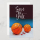 Casamento de basquete com amor em fundo azul Convite para salvar a data
