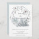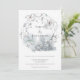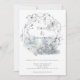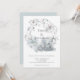 Perfeito para casamentos no inverno, e especialmente casamentos festivos, essa design tem uma coroa elegante de galhos, bagas e folhas com uma floresta de inverno aquarela atrás. A tipografia serif simplista é facilmente personalizada para seus próprios detalhes. No verso, no centro, está uma cena de aquarela florestal gelada.