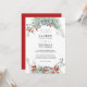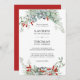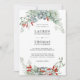 Um adorável design de convite para o casamento para o feriado e durante os meses de inverno, este design apresenta ramos de aquarela de eucalipto, pinheiro, névoa e morangos vermelhos. A parte de trás do convite corresponde às bagas de um vermelho rico. Você também pode editar a cor de fundo para qualquer outra cor de sua escolha. O modelo de texto neste design usa uma mistura elegante de rostos serif para belos resultados. Personalize o texto com seus detalhes de casamento.