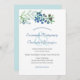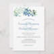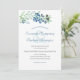 Este convite botânico minimalista para casamento apresenta galhos de arte em esboços, folhas, e bagas azuis e castanhas ao longo do topo. A carta atrás corresponde a uma matiz das bagas. Personalize a design com seus detalhes de casamento nos campos de modelo.