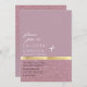 Este convite de casamento moderno e elegante é perfeito para o evento clássico e sofisticado. Ele apresenta uma fita de ouro impressa falsa separando dois blocos coloridos de brilho brilhante cor-de-rosa-rosa e roxo empoeirado. É um design minimalista, chique, simples e contemporâneo; ideal para o na moda e casal de tendências. ***NOTA DE DESIGN IMPORTANTE: Para qualquer solicitação de design personalizada, como solicitações de correspondência de produtos, alterações de cor, mudanças de posicionamento ou qualquer outra solicitação de alteração, clique no botão "MENSAGEM" ou envie um e-mail ao designer diretamente em lafemme.art@gmail.com. Você pode até enviar um e-mail para ela solicitando um design completamente personalizado e novo.