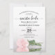 Este belo convite de casamento em espanhol apresenta um design floral moderno com um solteiro longo e pálido, pincelado, cor-de-rosa, deitado de lado, refletindo em uma piscina com ondas e ondulações. A design é simples, elegante, romântica e sofisticada, com caligrafia antiga e conteúdo totalmente personalizável. O texto diz: con la bendición de nuestros padre o convite cordialmente a nuestra boda, que significa "com a bênção de nossos pais, nós o convidamos cordialmente para o nosso casamento."