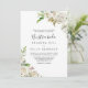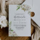 Este convite de casamento de peônia floral de inverno é perfeito para um casamento simples. A design apresenta lindas peônias brancas desenhadas à mão, amontoadas em buquês neurônios com botões de burlagem e folhas verdes