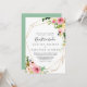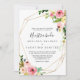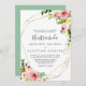 Este convite de casamento da nuestra de outono tropical de ouro geométrico é perfeito para um casamento de destino. A design apresenta cor-de-água rosa, esbranquiçada, amarela, azul e branca, que cai em pedras com folhas verdes botânicas, enfeitando uma moldura geométrica.