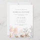 Apresentando um incrível recife de coral e conchas intricadas no mar, este belo convite de casamento é perfeito para casais que querem celebrar seu grande dia perto da praia. É um design elegante minimalista que apresenta uma ilustração impressionante de aquarela de um recife de coral em tons neutros de sujeira com pop de coral vibrante, criando uma atmosfera calmante e serena.