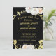 Convite Casamento de Boho Moderno Floral Negro e Dourado