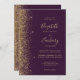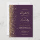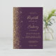 A borda esquerda deste elegante convite de casamento moderno apresenta um design dourado falso. O texto personalizável combina manuscrito dourado, fontes em copperplate e itálico em um fundo violeta roxo. O verso apresenta um violeta roxo correspondente e design dourado.