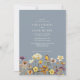 Defina o tom para o seu casamento boho-chic com este convite impressionante, com flores silvestres pintadas manualmente em cores de queda vibrantes de roxo, laranja queimada, amarelo e verde. O fundo azul suave e empoeirado proporciona uma tendência e na moda, enquanto o roteiro moderno creme adiciona um toque de elegância. Ideal para casamentos bóquicos, casamentos de jardim rústicos, comemorações de primavera, verão ou outono, ou cerimônias boêmicas, esta design incorpora beleza natural e sofisticação.