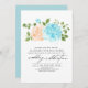Convite para Casamento de Buquês Florais de Pêssego Azul Moderno
