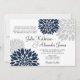 Convite Casamento de Burst Floral de marinho Azul e Cinza