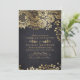 Elegante design de renda floral vintage em folha de ouro falso shimmery sobre fundo negro rústico, chic e romântico, excelente para o casamento vintage moderno no outono e no inverno. Veja todas as peças correspondentes na coleção abaixo.