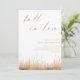 Celebre o seu amor com o nosso Dourado Convite de Casamento "Cair no Amor". Apresentando a frase romântica "Cair no Amor" em uma elegante escrita em ouro, este convite exumenta luxo e charme. Personalizada com seus nomes, data de casamento, local, detalhes de RSVP e outras informações essenciais em tipografia de ouro sofisticada em um fundo branco pristino, ela combina elegância moderna com charme rústico. Os sotaques sutis de grama seca no fundo evocam o calor e a beleza do outono, fazer perfeito para casais que buscam um na moda e um convite memorável que reflita a estação e sua história de amor única.