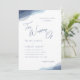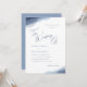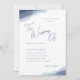 Este convite de casamento elegante, sofisticado e minimalista apresenta ondas sutis do oceano, feitas em aquarela, sobre uma tela branca...com os detalhes do seu casamento projetados em caligrafia azul e tipografia.