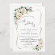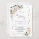Design único e elegante, com flores cor-de-rosa pincelado, aquarelas de marfim, falso quadro de ouro, caligrafia "o casamento de, e a recepção a seguir; no verso, o quadro floral e as iniciais caligráficas. Use a ferramenta Personalizar para adicionar suas informações e fazer alterações. Para obter itens correspondentes, visite minha Coleção de Flores de Blush Exclusivas.