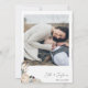 King White Protea Moderna Calliografia Convocação Simples Rei Branco protea convite de casamento apresentando um arranjo no canto inferior esquerdo da design. Este convite também apresenta a foto do casal no verso, juntamente com algum texto. A fonte de script usada para os nomes de casais está em um estilo moderno de caligrafia monofline. Este convite para o casamento da protea-rei é ideal para um casal em busca de um simples e moderno design de convite para proteína com uma foto.