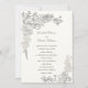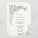 Um incrível quadro floral com peonias como peças centrais, com flores para casamentos de preenchimento e folhagem como eucalipto, flores de estoque, samambaias, flores verônicas e mais, desenhadas à mão a tinta e em camadas com efeito falso emboscado, enfeita esse elegante e sofisticado modelo de convite formal para casamento que apresenta caligrafia elegante e fundo branco pérola. Este convite para casamento de arte é uma escolha encantadora para casais que amam arte fina, designs de arte, arte única e original e designs de casamento tradicionais e formais. Personalize cada linha de texto. Itens correspondentes disponíveis.