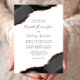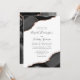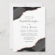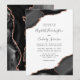 Este elegante convite de casamento moderno apresenta uma design de agata preta, aparada com falso brilho de rosa em dois cantos. O texto personalizável combina a escrita manual de cinzas de carvão, as fontes em copperplate e itálico em um fundo branco. O verso apresenta um design de agate preto e rosa dourado correspondente.