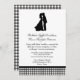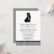 O convite de casamento encantador feito em preto e branco, com a silhueta preta de uma noiva e um beijo de noiva. Gráficos de gingham preto-e-branco e fita preta decoram o fundo do convite. Texto em preto é totalmente personalizável e pronto para personalizar para o seu casamento. Convite para Excelente para casamentos antigos, de campo ou de preto e branco.